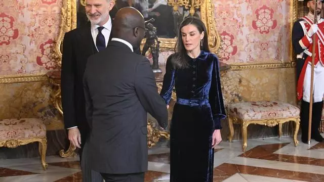 Felipe VI e Letizia, na recepción ao corpo diplomático, este venres no Palacio Real, en Madrid. / José Oliva / Europa Press